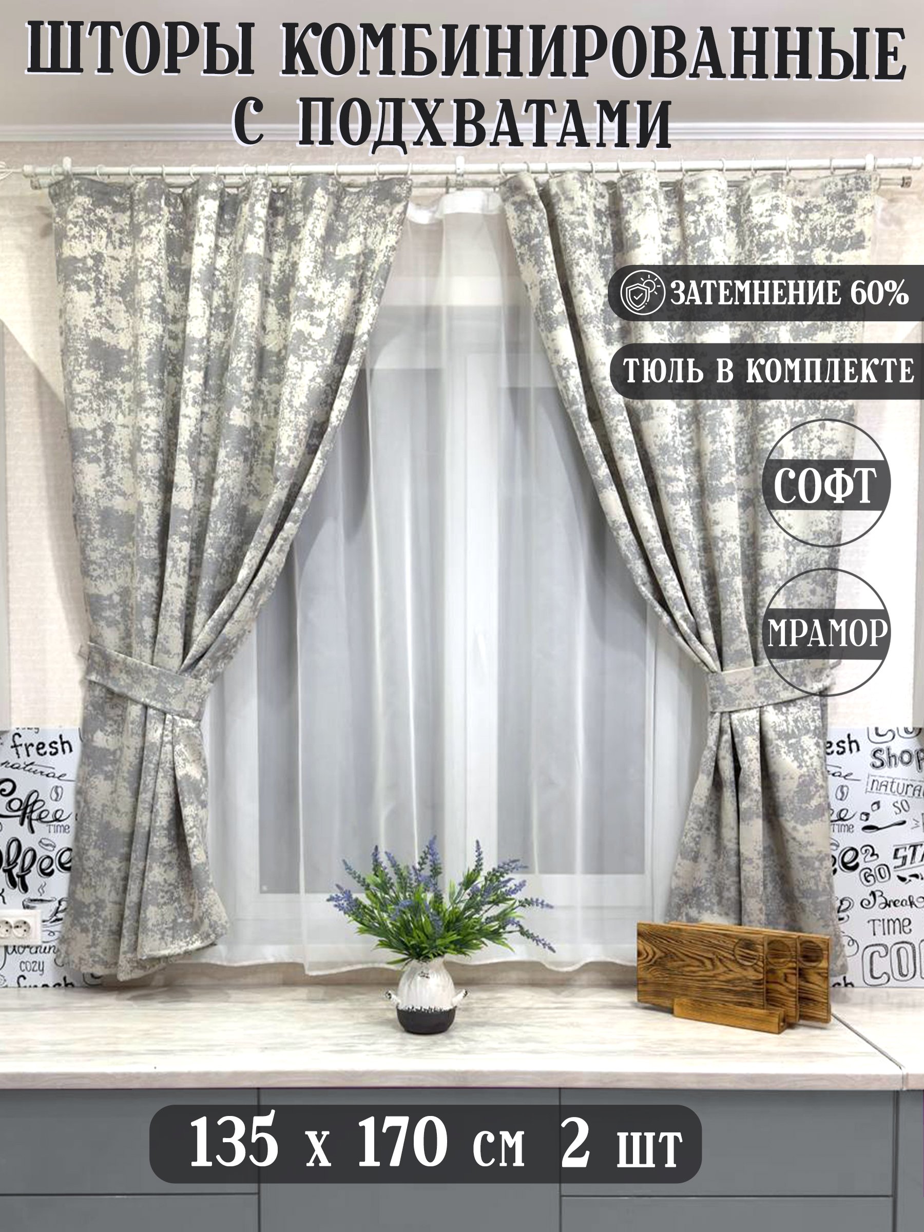 Шторы софт мрамор