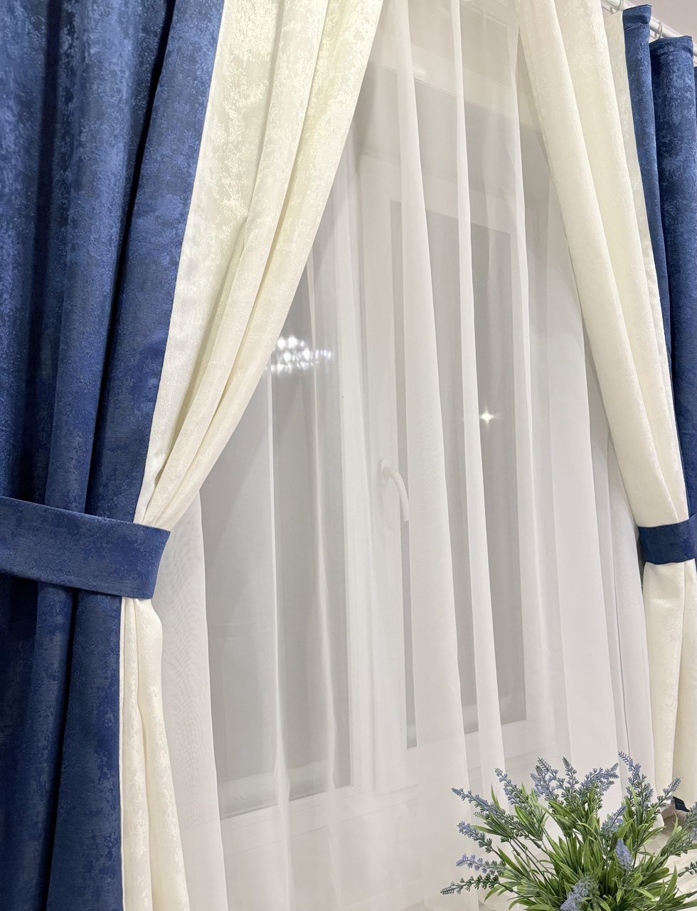 Шторы мрамор двухцветный синий+мол