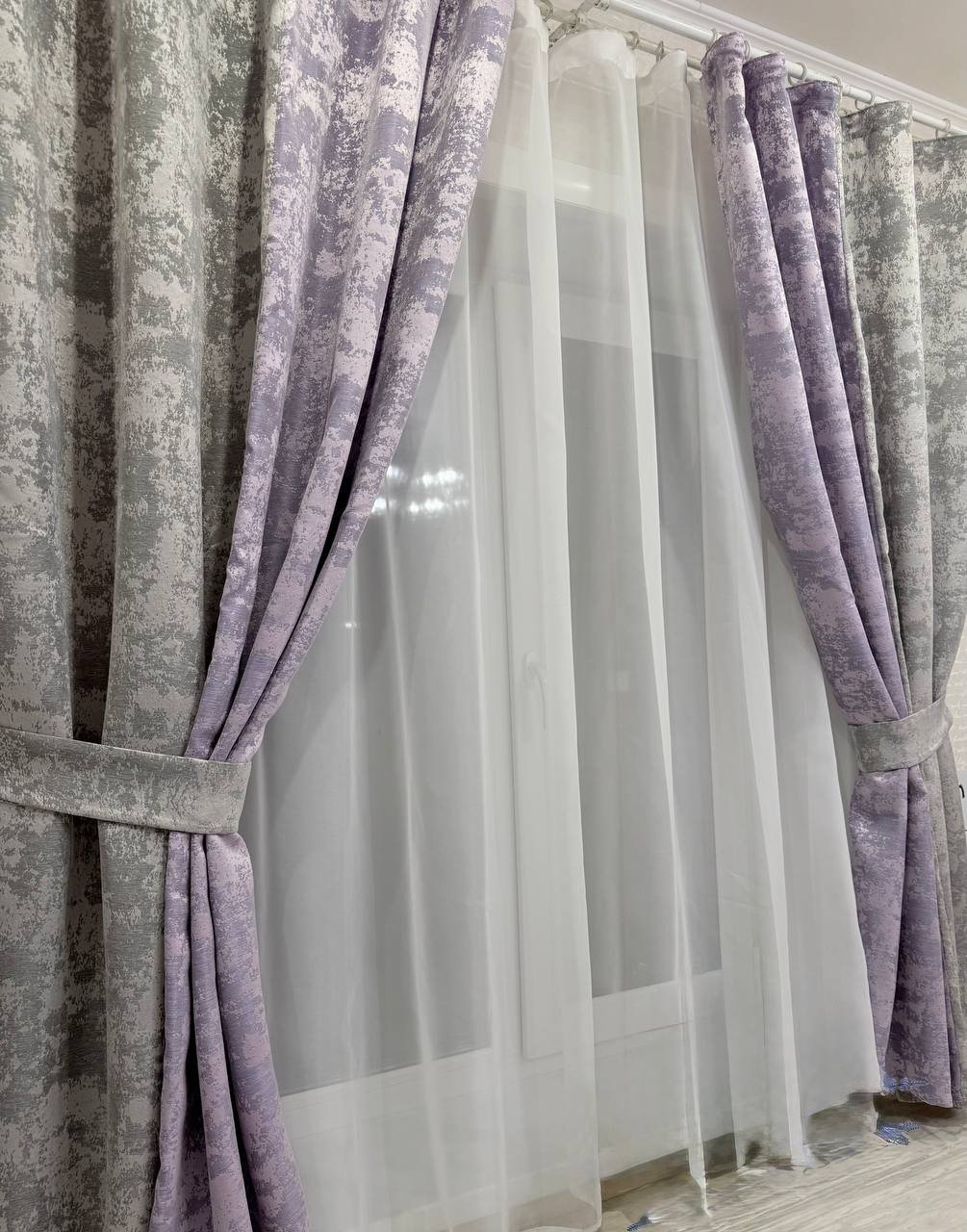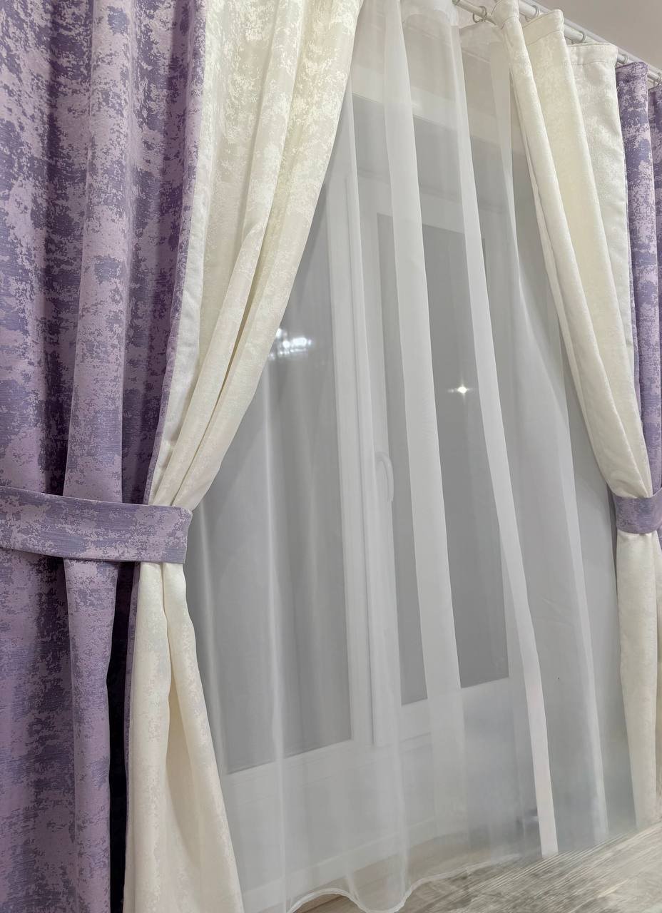 Шторы мрамор двухцветный сирень+мол