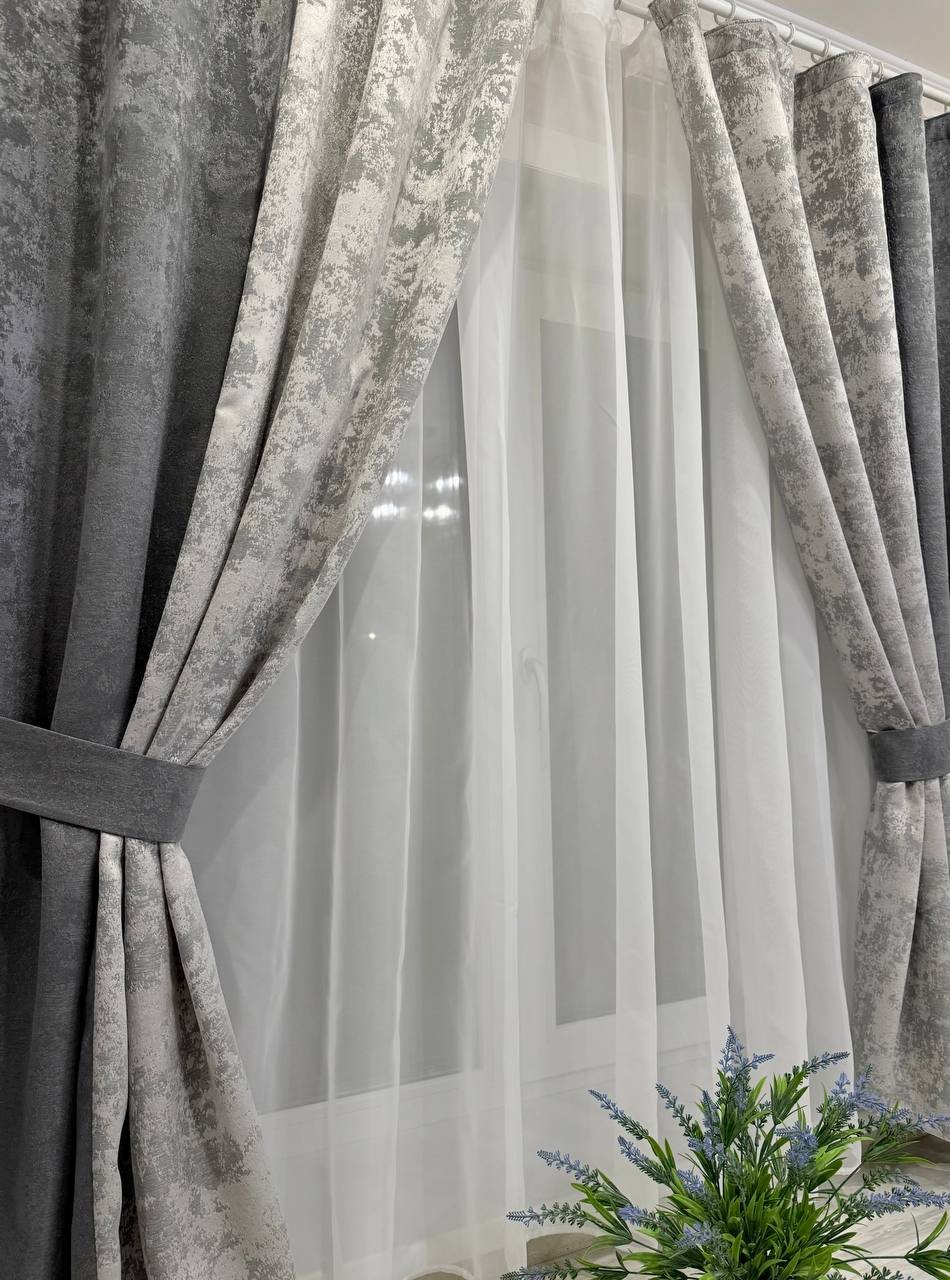 Шторы мрамор двухцветный графит+серый