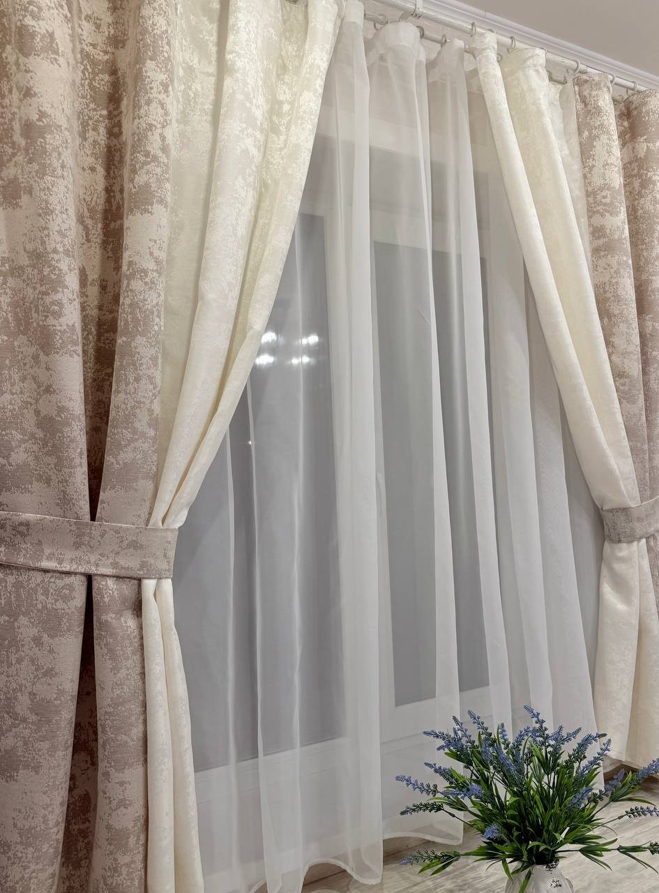Шторы мрамор двухцветный бежевый+мол