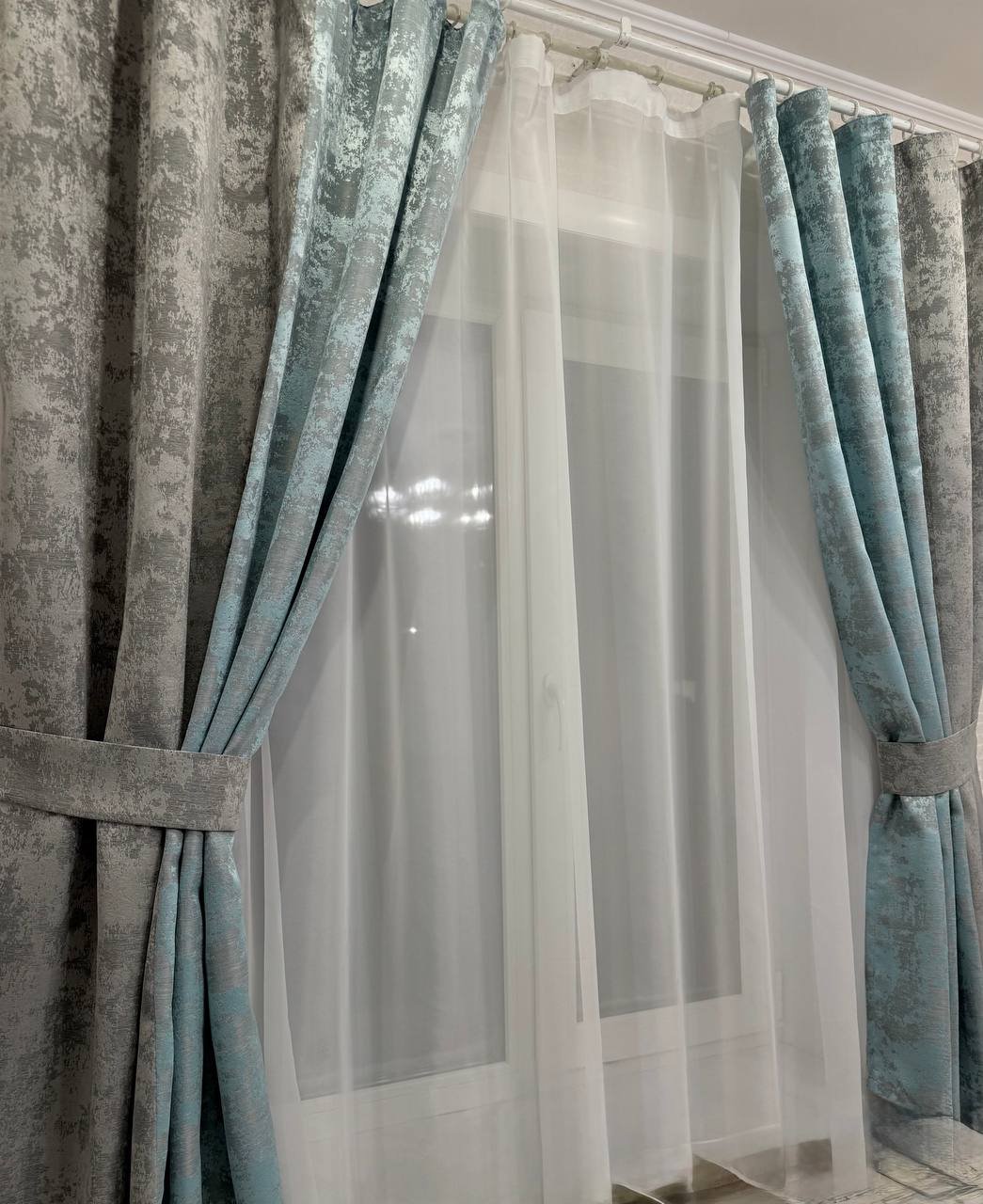 Шторы мрамор двухцветный бирюза+сер