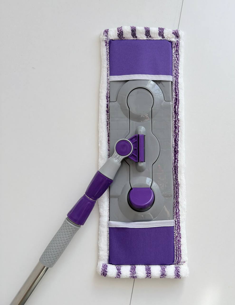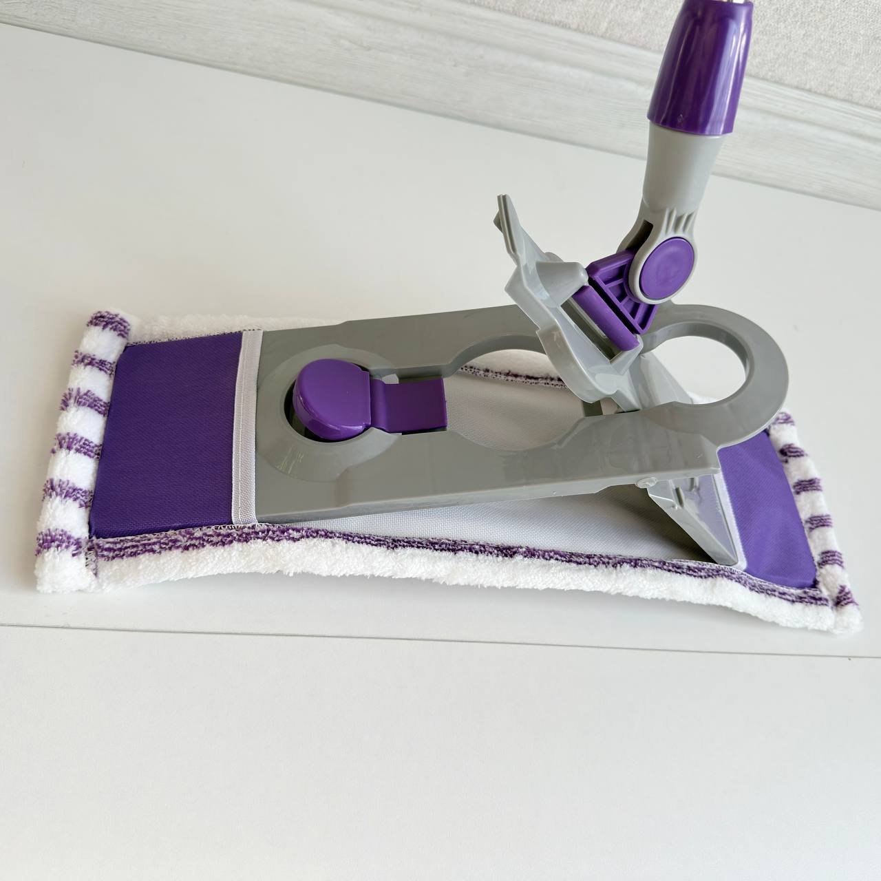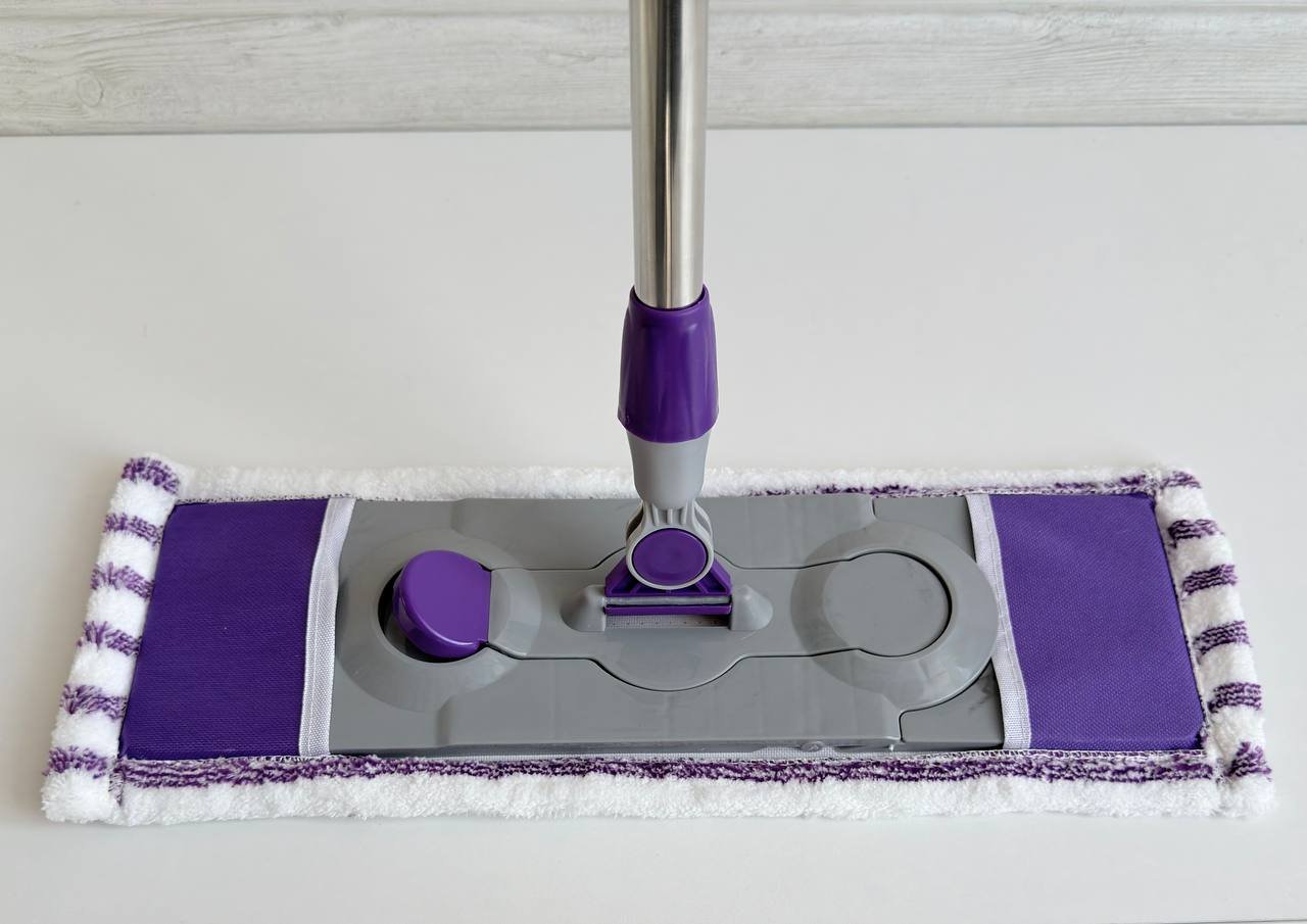 Швабра с телескопической металлической ручкой с мягкой вставкой. Насадка из микрофибры.
