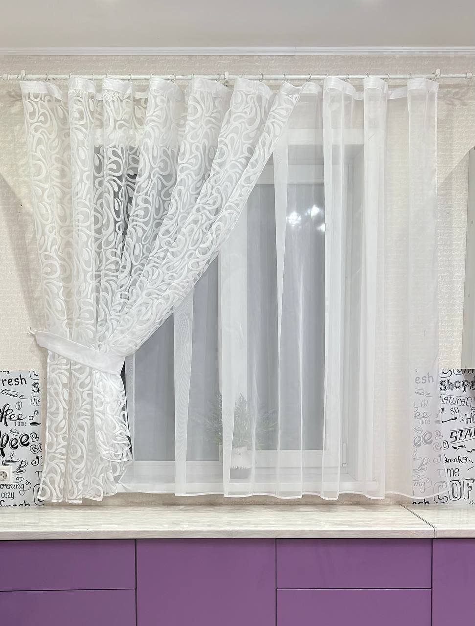 Комбинированные шторы для кухни шир 4м высотой 1,7м В комплекте есть два подхвата